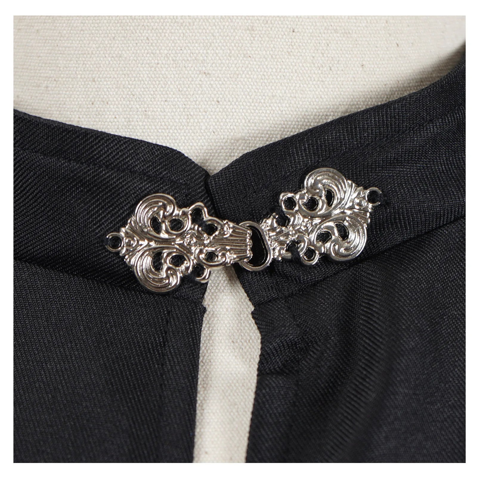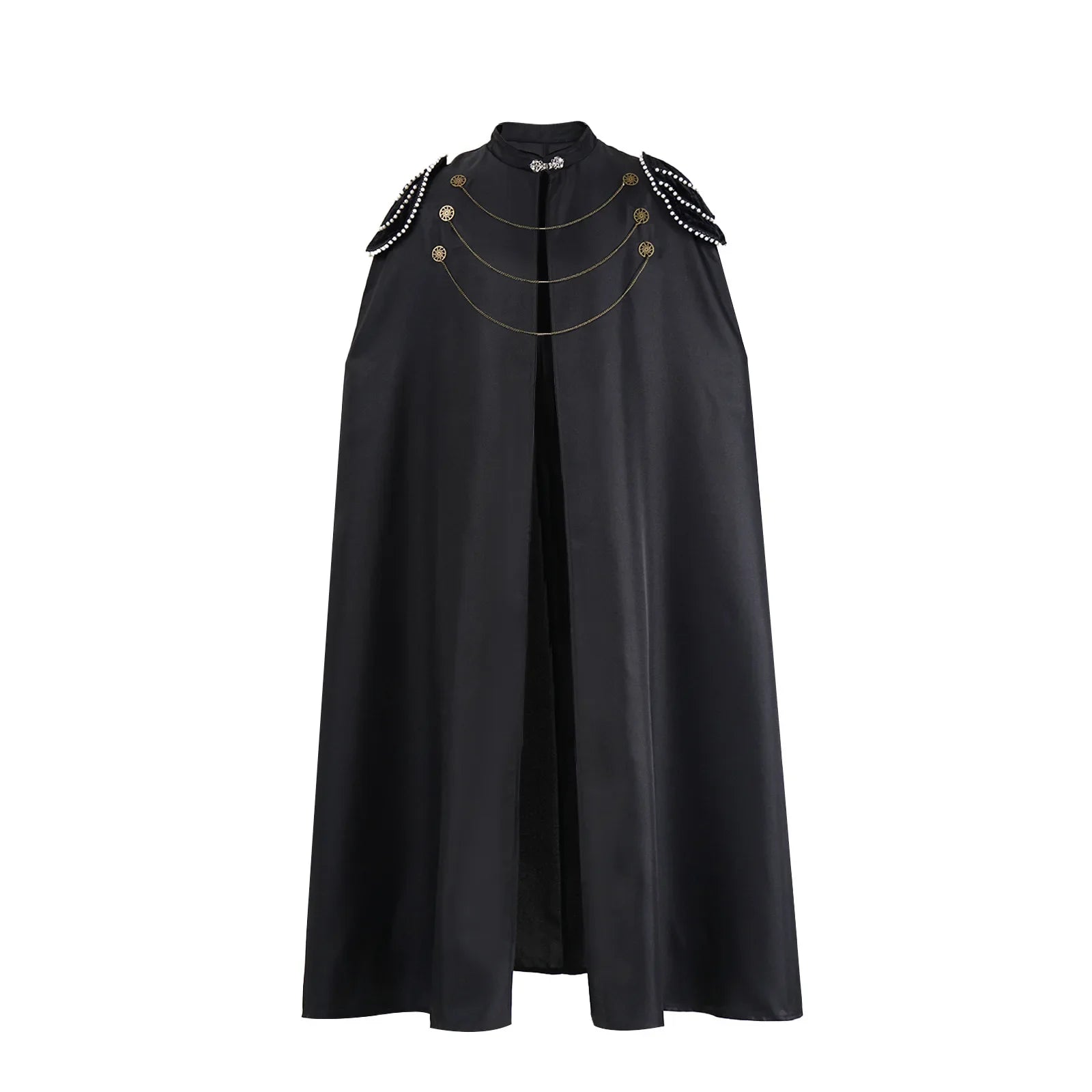 Crafted from lightweight polyester, this gothic cape offers comfort without compromising visual impact. The fluid fabric allows natural movement, making it ideal for long events, conventions, or performances. Its unisex design adapts easily to different body types and costume concepts. Easy to layer over armor, tunics, or modern clothing, this cape is a versatile statement piece built for repeated use and creative expression.