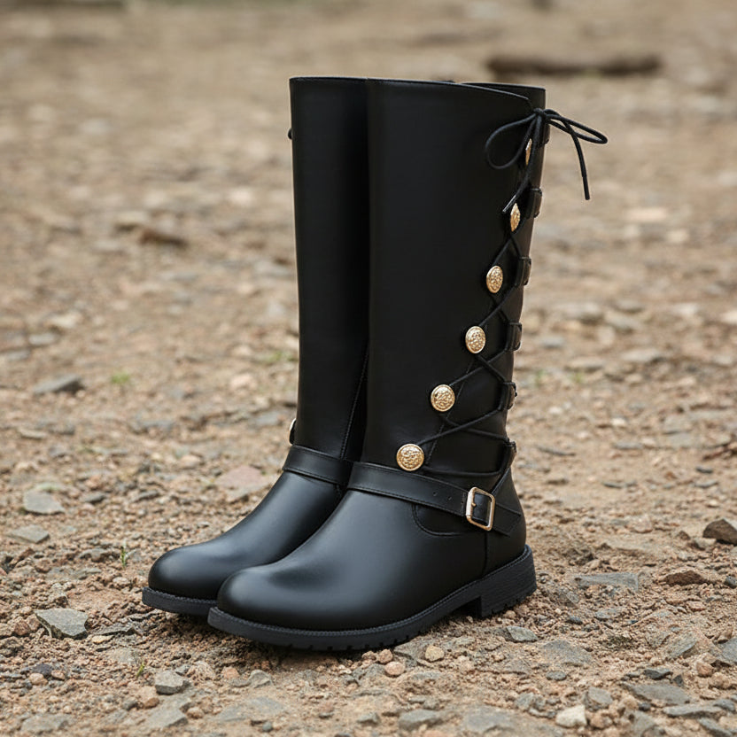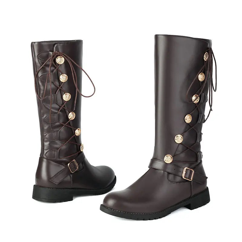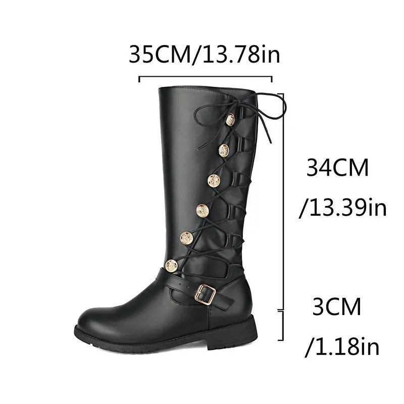 Built for autumn and winter, these steampunk-inspired boots focus on warmth, support, and versatility. The soft lining helps retain heat, while the anti-slip sole provides confidence on daily walks. Decorative laces, metal buttons, and a side buckle create a refined retro look. Easy to pair with trousers, coats, or long outfits, these boots are a reliable choice for anyone seeking functional footwear with a distinctive vintage edge.