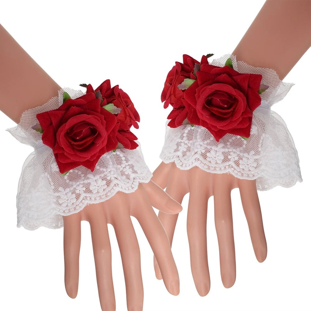This steampunk lace bracelet blends vintage charm with bold gothic aesthetics. The layered lace cuff gently wraps around the wrist, while the vibrant red roses create a captivating focal point. Designed for lovers of Lolita fashion, steampunk styling, and dramatic accessories, this piece transforms any outfit into a refined statement look. Whether paired with a costume or worn as a bold fashion accent, it delivers theatrical elegance effortlessly.