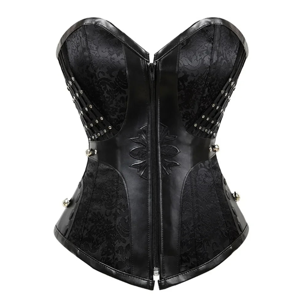 Designed for both comfort and impact, this steampunk corset features a front zipper closure for easy wear and a lace-up back to fine-tune the fit. The flexible spandex blend allows movement while maintaining firm support. Available in plus sizes, it adapts to different body shapes without compromising structure. Whether styled with skirts, trousers, or layered outfits, this corset delivers a confident, sculpted appearance suitable for clubwear, costumes, or gothic fashion lovers.