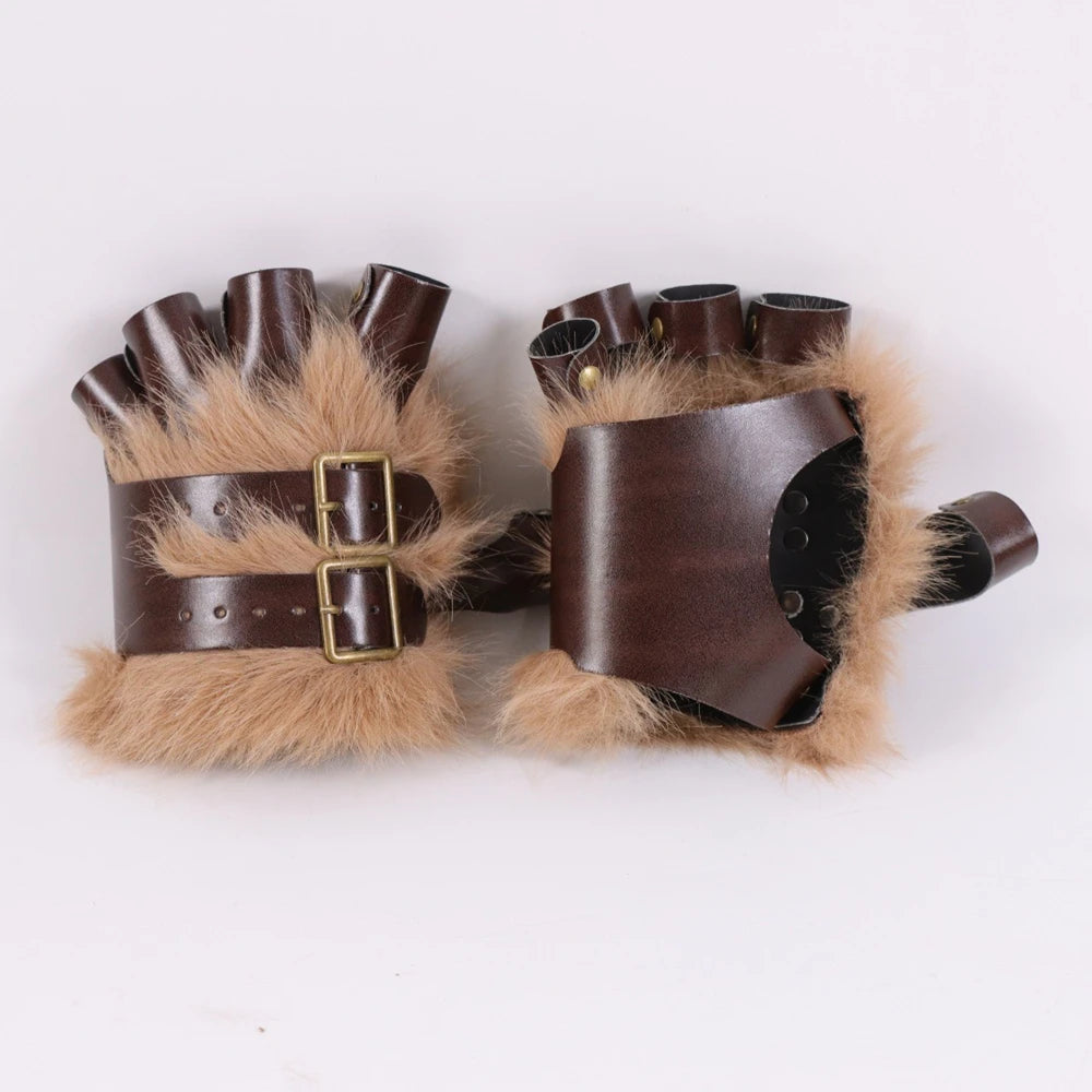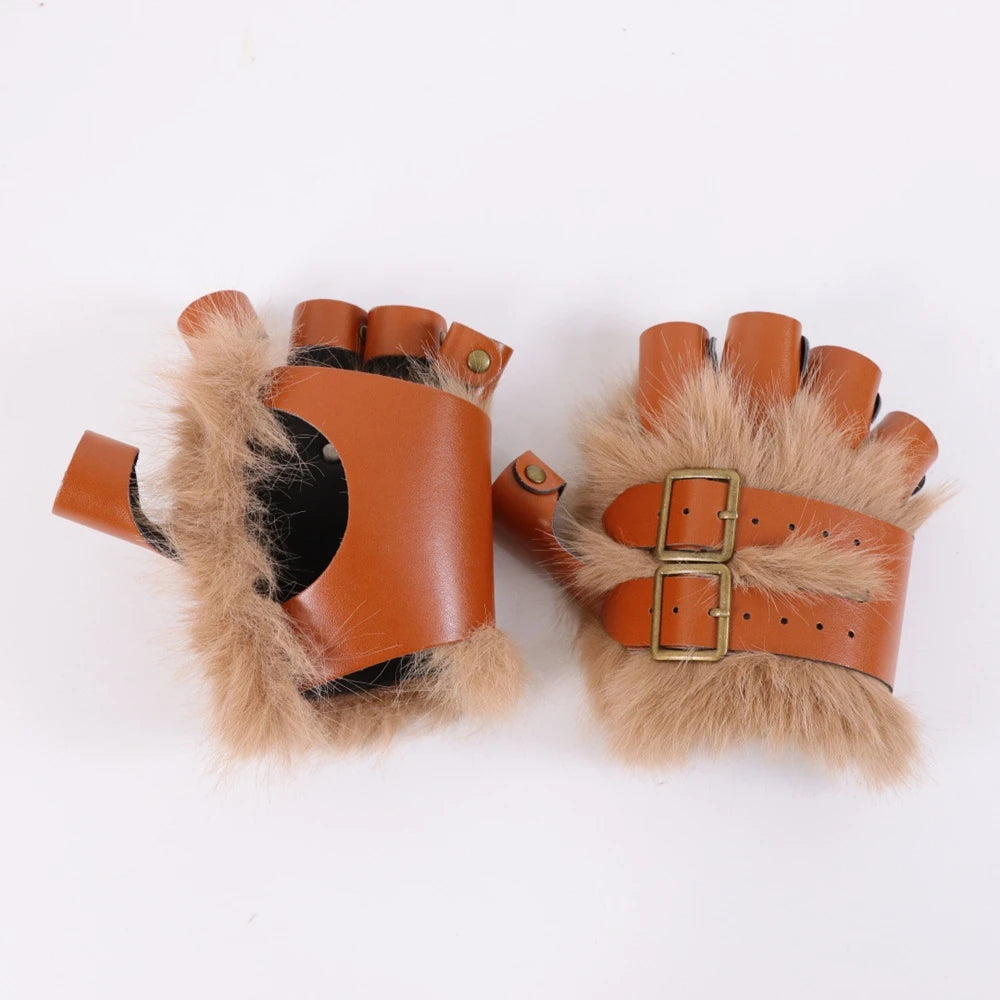 • Adjustable steampunk gloves with faux fur for a unique style.