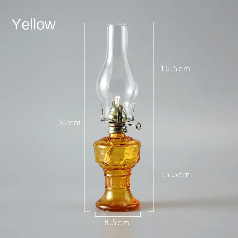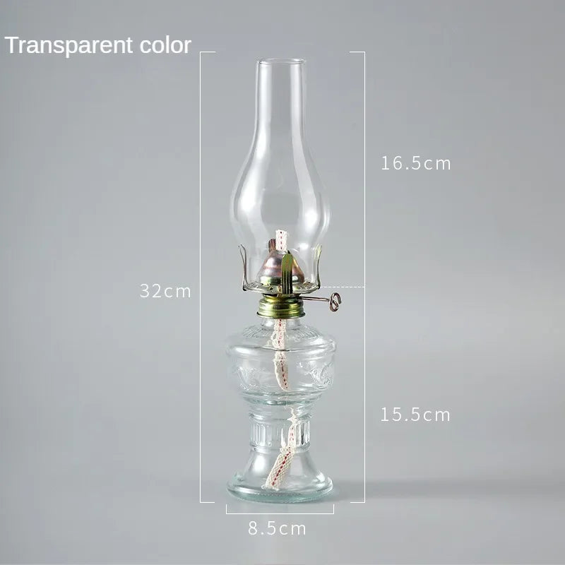 Crafted with thick molded glass and sturdy metal components, this oil lantern ensures long-lasting use while maintaining its elegant appearance. The removable glass chimney makes cleaning simple, while the adjustable wick system gives full control over brightness. Its stable base provides secure placement on any surface. Ideal for decoration, photography, or ambient lighting, this lamp blends practicality with nostalgic aesthetics, making it a versatile addition to any interior setting.