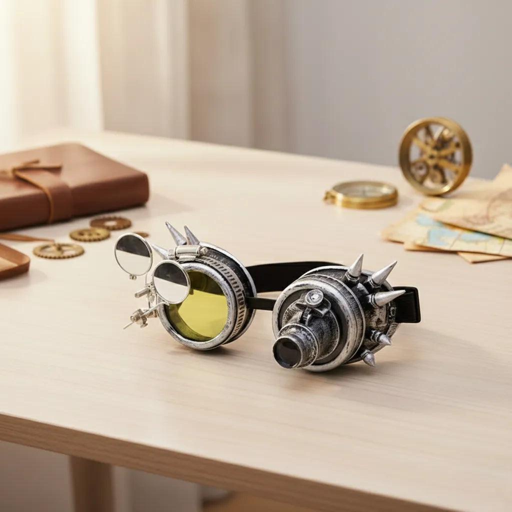 Steampunk Welding Goggles embody the very essence of retro-futurism with their metallic eyelets, copper accents, and industrial finishes. Designed to add a theatrical and immersive touch, they perfectly complement cosplay, Steampunk costumes, or bold alternative looks. Their evocative design blends engineering, creativity, and mystery. An ideal accessory to assert your style with striking visual intensity.