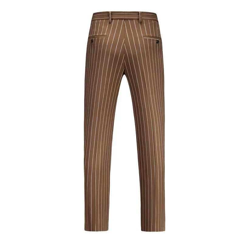 These steampunk-inspired striped pants are crafted for men who value elegance and structure in their wardrobe. The vertical stripe pattern enhances the leg line, creating a sleek and confident appearance. Designed with a tailored fit, they are ideal for formal events, business meetings, or stylish social gatherings. Their clean and timeless design allows easy pairing with shirts, vests, or blazers, making them a versatile choice for autumn and winter outfits.