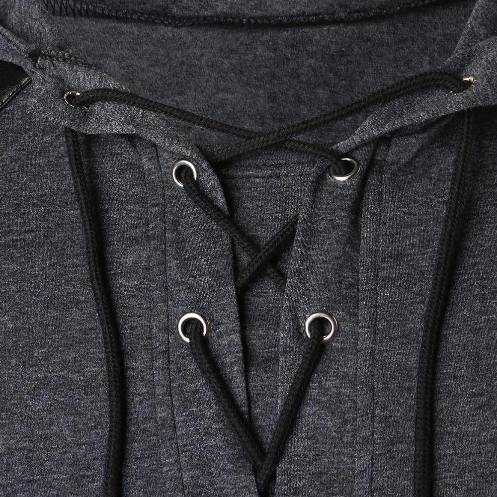 This Casual Steampunk Lace-up Shirt merges modern fashion with vintage medieval flair, perfect for cosplay, LARP, or daily wear. Crafted from durable polyester, it features a distinctive lace-up design, complemented by sleek arm bandages for added style. Whether you're dressing up for a historical reenactment or simply making a fashion statement, this hoodie ensures you'll stand out. The attached hood adds practicality, making it perfect for cooler weather.