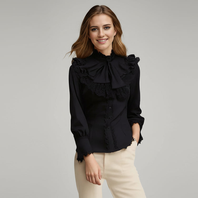 This high-collar lace steampunk shirt is perfect for enriching a wardrobe inspired by vintage and alternative fashion. It pairs harmoniously with steampunk accessories or more understated pieces to create an elegant contrast. Comfortable to wear and visually striking, it is designed for retro style enthusiasts seeking an expressive, delicate garment capable of instantly elevating any outfit.
