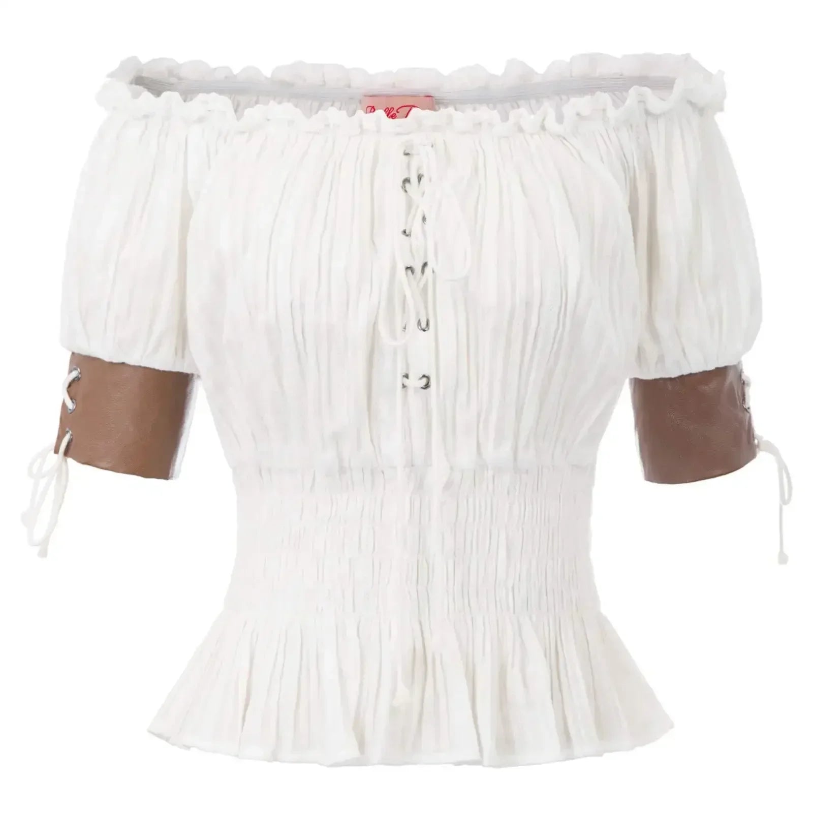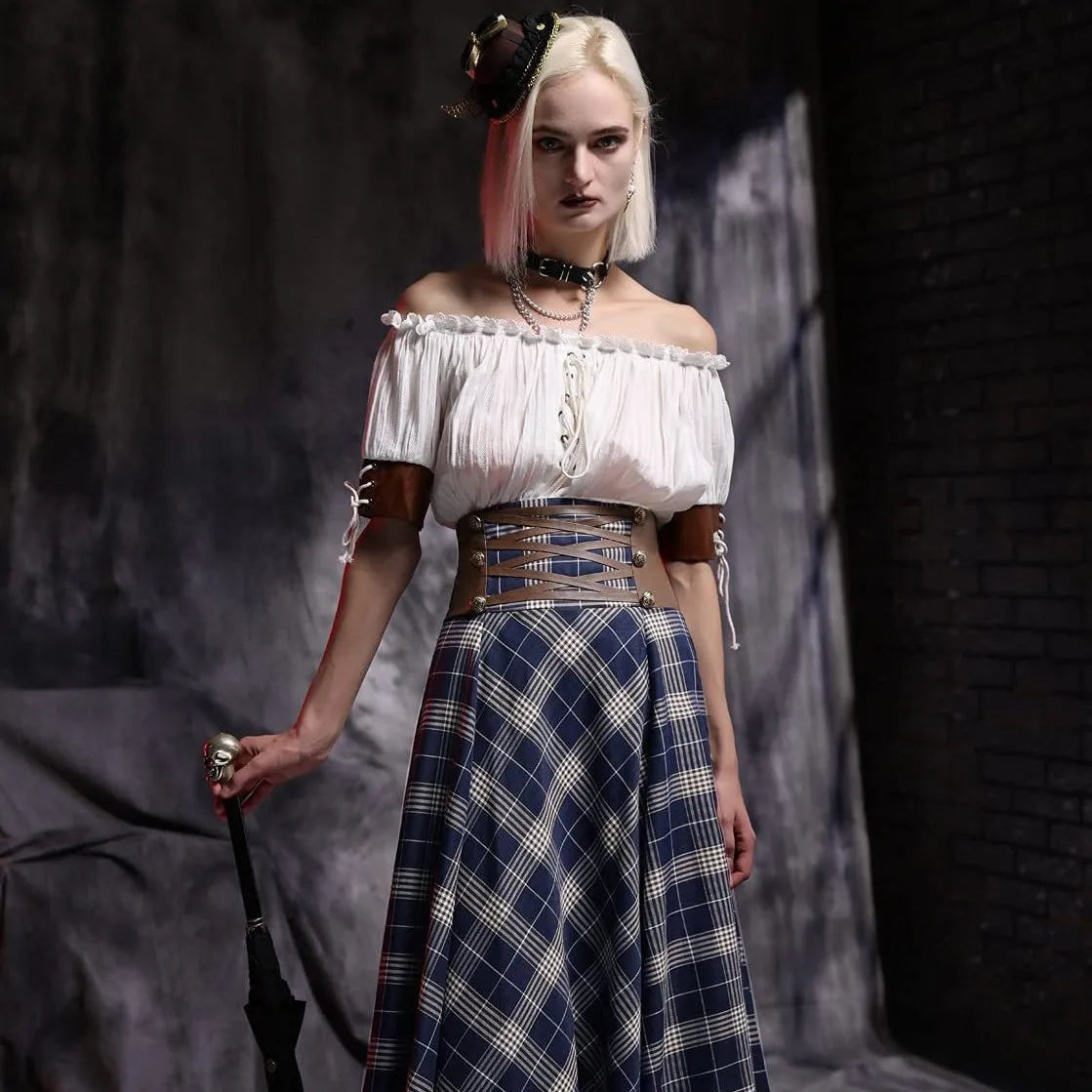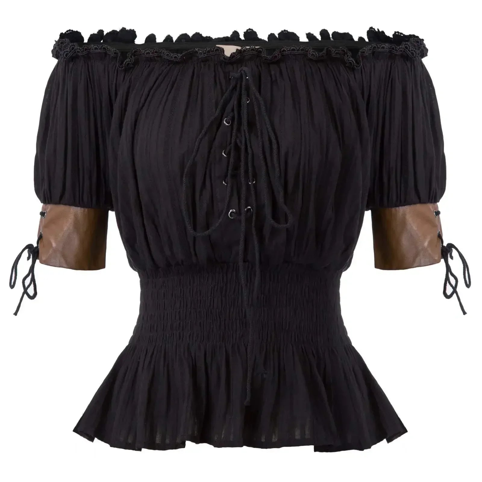 Show off your adventurous side with this medieval retro steampunk off-shoulder shirt. A perfect blend of Victorian charm and contemporary boldness, it enhances your silhouette while providing optimal comfort. Refined details like corseting and voluminous sleeves add a touch of sophistication, making it ideal for themed events or for those looking to stand out with a unique and refined style.