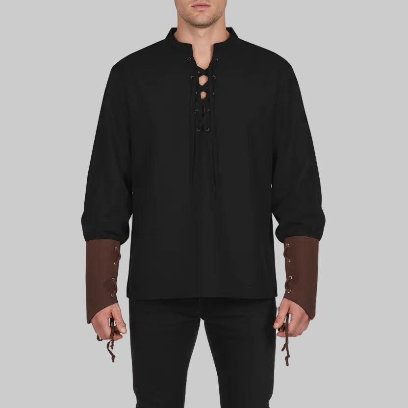 This medieval steampunk shirt is designed for men who want an authentic yet wearable renaissance look. The lace-up neckline adds character, while the structured sleeves bring a distinctive pirate-inspired style. Made from durable polyester with added stretch, it offers comfort without sacrificing appearance. Whether worn alone or layered, this shirt adapts easily to festivals, cosplay events, or bold everyday outfits with historical flair.
