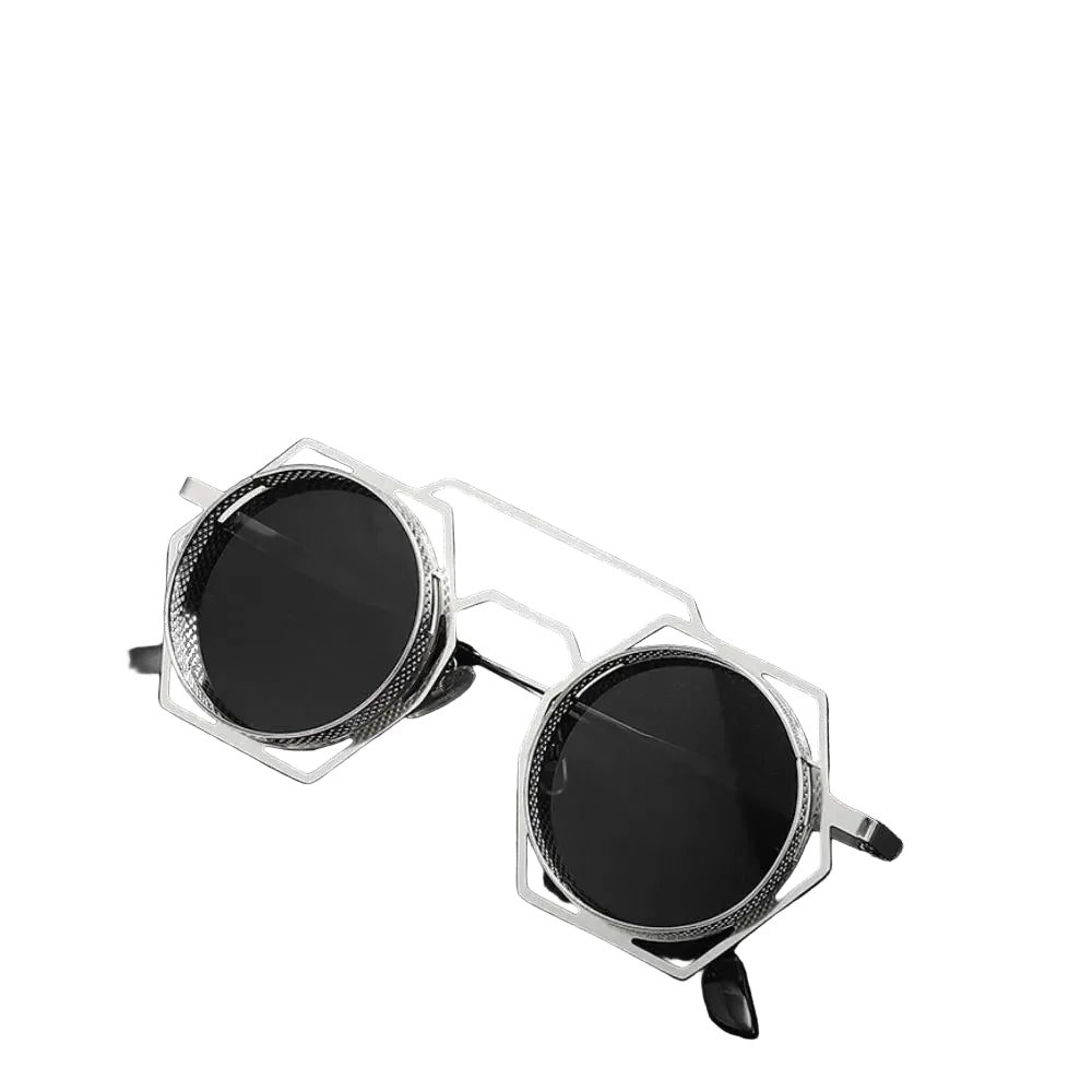 These steampunk sunglasses stand out through their architectural metal frame and unconventional round-hexagonal silhouette. Inspired by industrial and punk aesthetics, they deliver a strong visual identity without compromising comfort. The textured alloy finish adds depth and character, while the structured shape frames the face with confidence. Designed for individuals who embrace alternative fashion, these sunglasses transform a simple accessory into a true style statement.