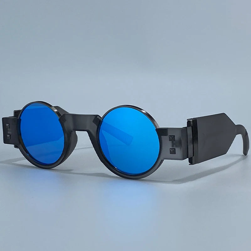 Experience the blend of Y2K punk aesthetics and superior eye protection with these round steampunk sunglasses. The lightweight polymer frame ensures comfort, while the UV400 lenses block harmful rays to keep your eyes safe from the sun. Ideal for those looking to stand out with retro-inspired eyewear, these sunglasses combine durability with a stylish edge, offering unmatched performance on the road or at any outdoor event.