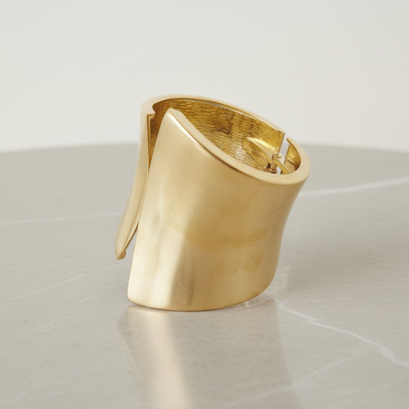 - Design: wide asymmetrical curved cuff – open sculptural front