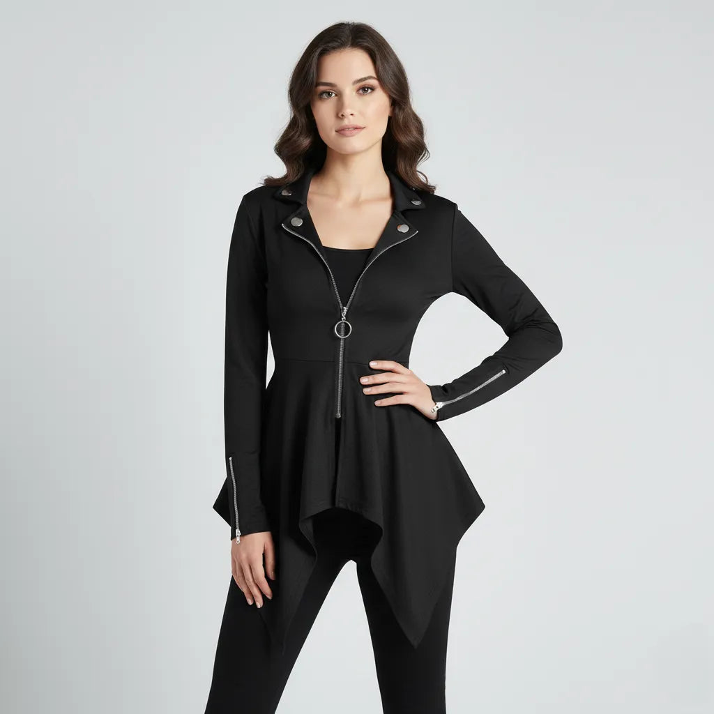 - Fitted cut with an elegant zip closure.