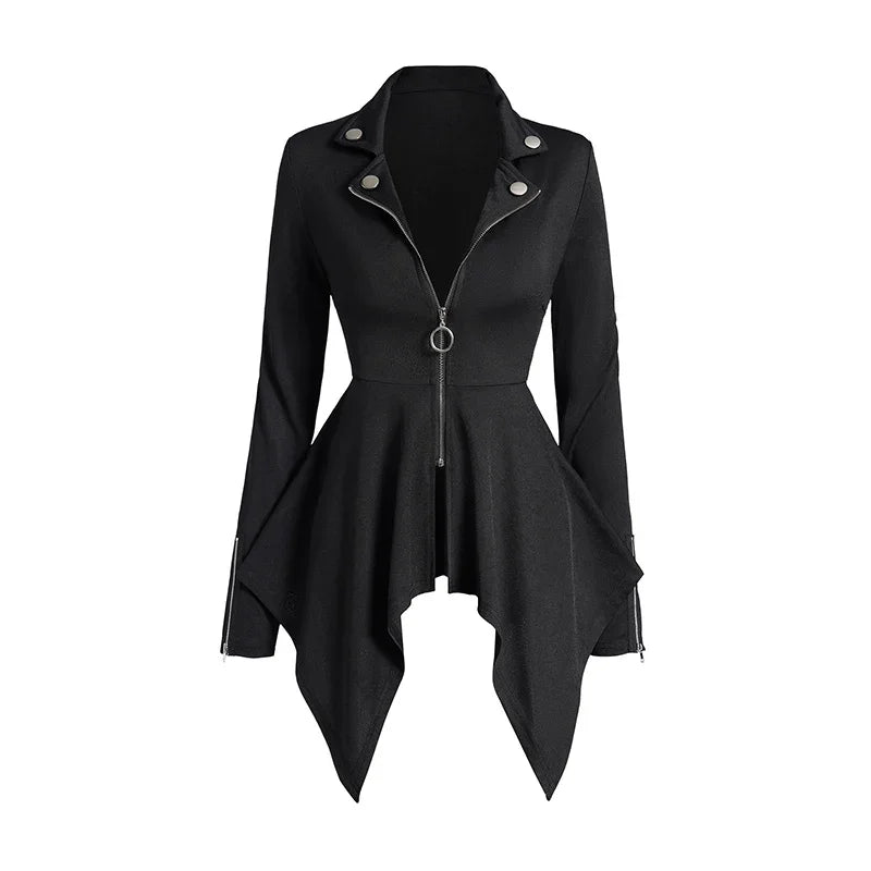 - Black steampunk jacket with a minimalist, modern design.