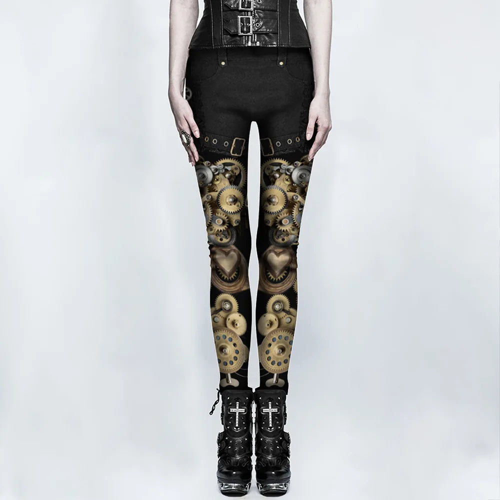 - Steampunk leggings adorned with detailed gear patterns.