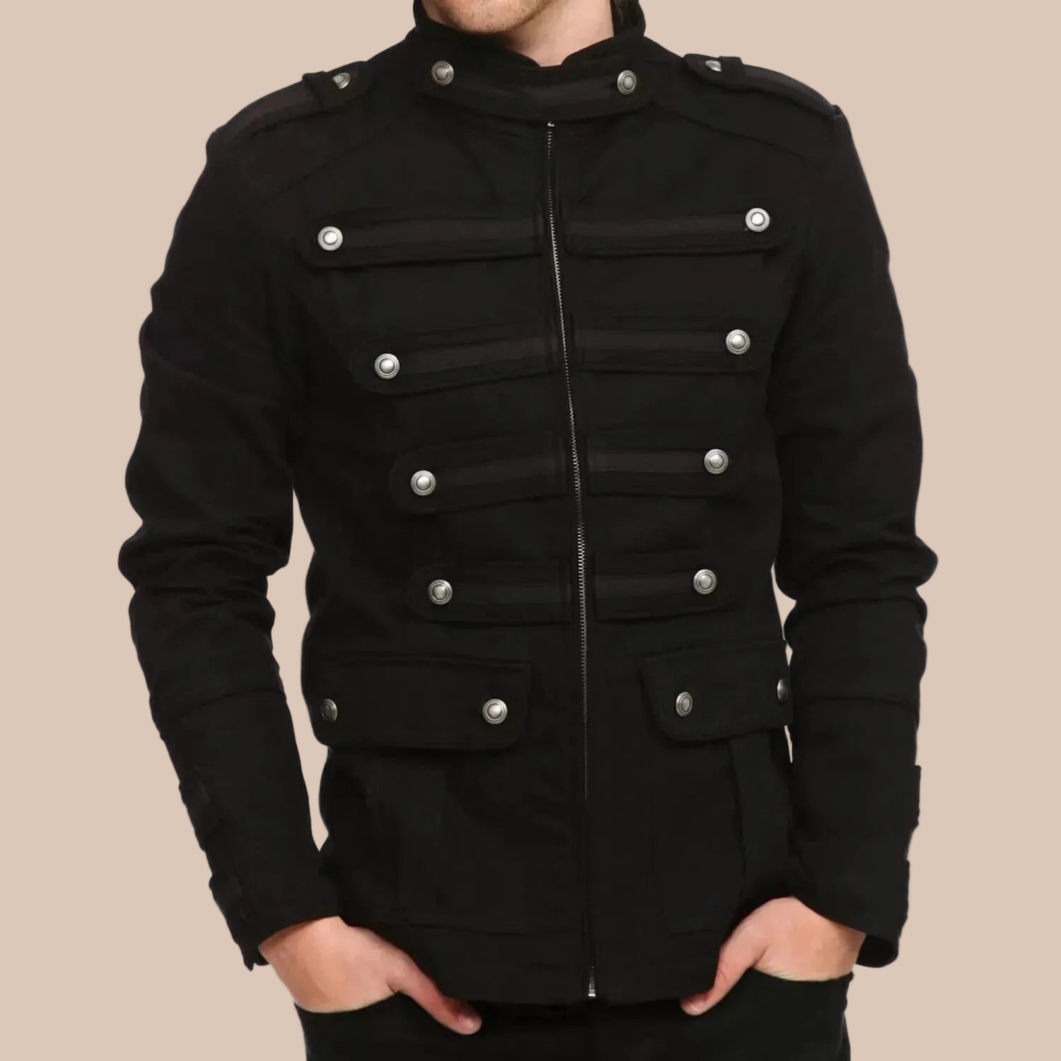- Command a powerful presence with the Black Steampunk Military Jacket, a dark military-style jacket that fuses strength, elegance, and retro-futuristic aesthetics.