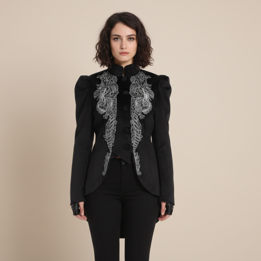 Whether attending a formal event, a steampunk convention, or a masquerade ball, this jacket will ensure you stand out. The combination of its structured cut and corset detailing makes it both flattering and stylish. With a detailed front design and luxurious velvet fabric, this jacket is not only a statement piece but also a practical choice for everyday wear. It brings timeless Victorian charm to modern fashion.