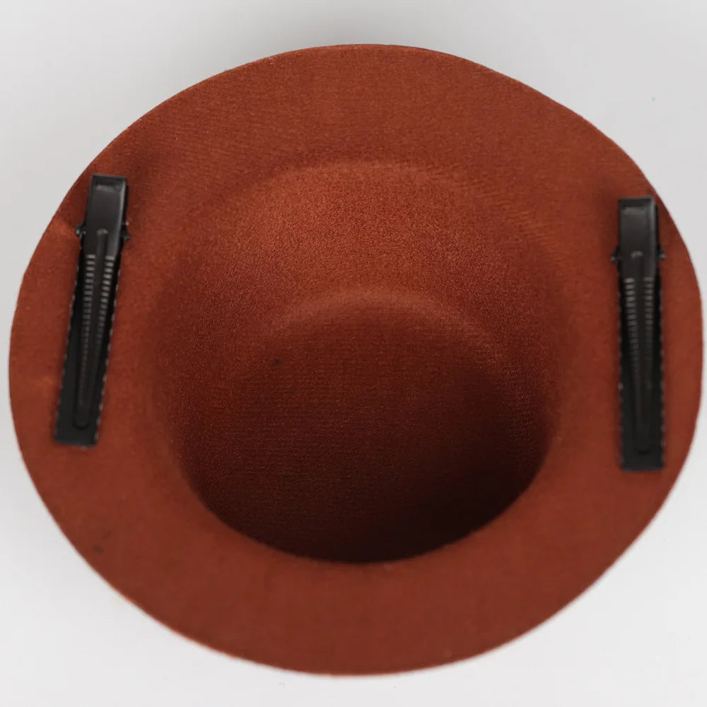 Crafted from felt, this mini hat maintains its shape while remaining lightweight and easy to wear. The integrated double clips ensure a stable and secure fit throughout the day. The decorative elements are firmly attached, offering durability over time. Designed for versatility, it suits various occasions such as parties, festivals, or performances. Its compact structure and detailed finish make it a reliable accessory that enhances any outfit effortlessly.