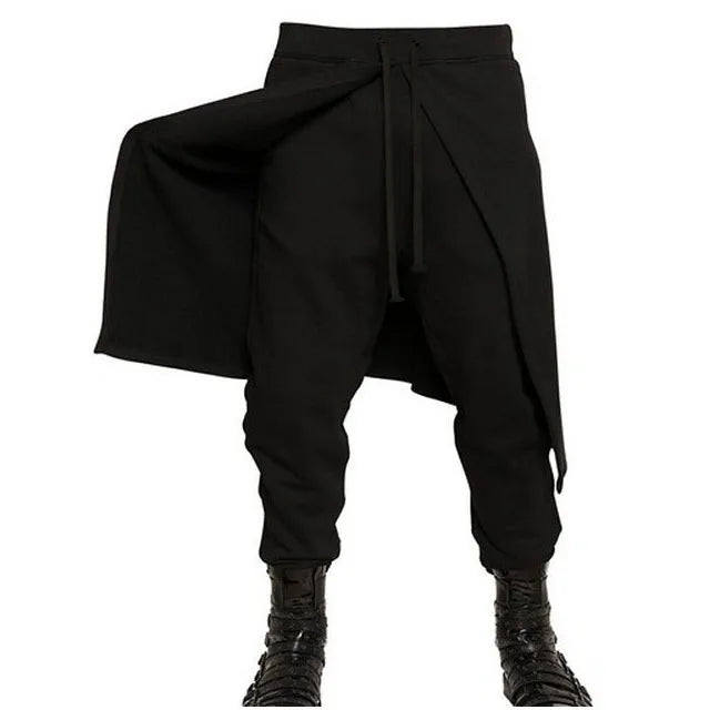 These loose-fitting steampunk pants are inspired by medieval and gothic fashion, offering a striking layered silhouette. The dropped crotch and flowing panels create movement and visual depth, making them ideal for stage performances, cosplay, or alternative streetwear. Designed for men who embrace dark aesthetics, these pants pair easily with boots, fitted tops, or long coats to complete a bold and expressive look.