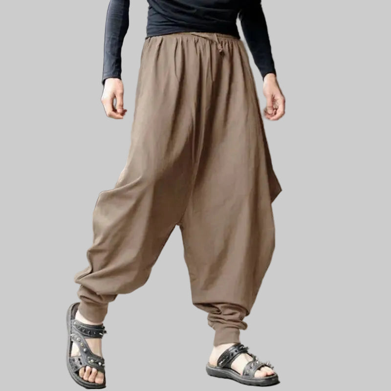 Designed with casual comfort in mind, these Steampunk pants are perfect for cosplay or everyday wear. Crafted from soft cotton, they ensure a breathable fit throughout the day. The wide-leg style offers ease of movement, while the elastic waistband keeps you comfortable. Whether for a pirate, Viking, or medieval look, these pants fit every occasion with a unique twist.