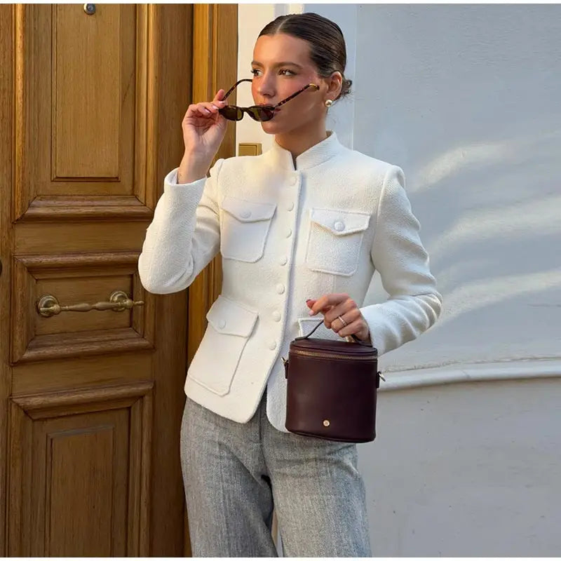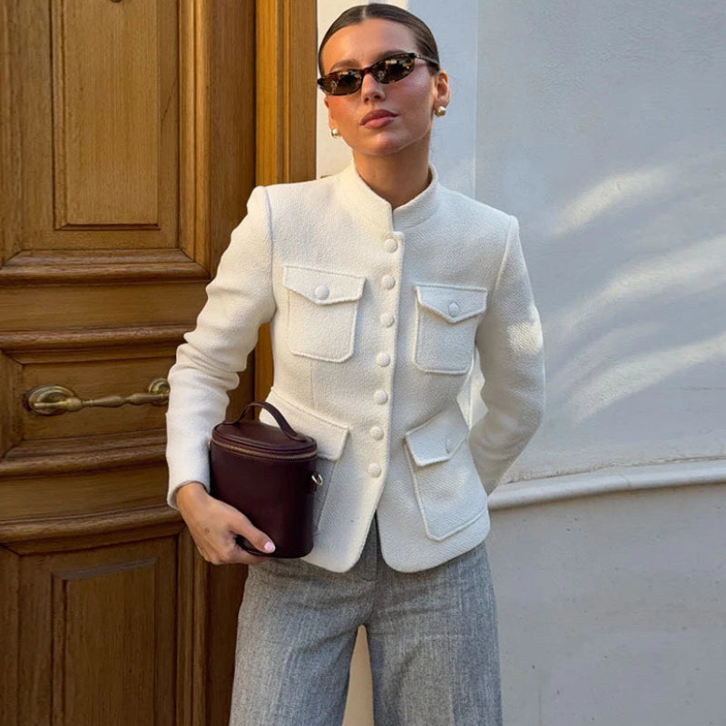 - Chic steampunk jacket with a structured and elegant cut.