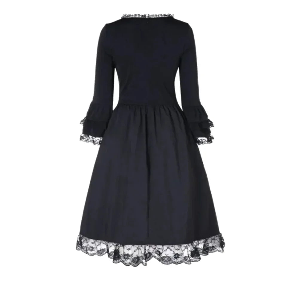 The elegant silhouette of this dress effortlessly combines style with comfort. The natural waistline and full sleeves give it a Victorian-inspired flair, while the mini length adds a modern twist. Whether you’re attending a steampunk event, a medieval gathering, or simply looking to add some gothic edge to your wardrobe, this dress is versatile enough for any occasion. Its soft polyester fabric provides comfort, while the lace detailing adds the finishing touch to your gothic ensemble.