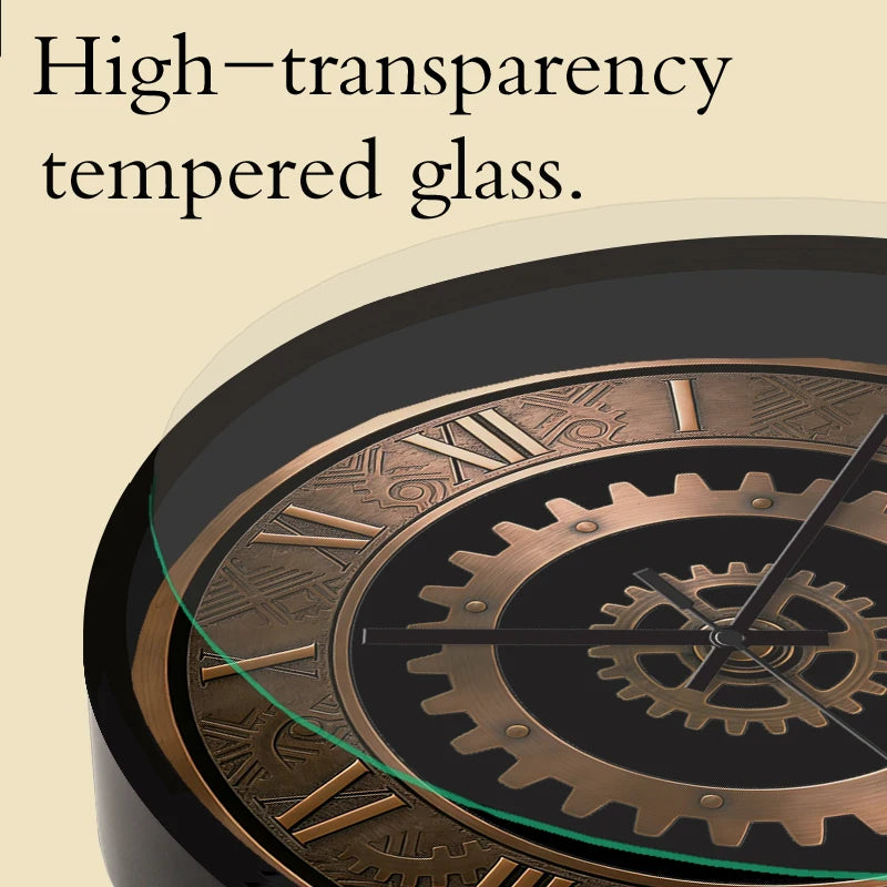 Silent Steampunk Gear Clock with Tempered Glass Finish