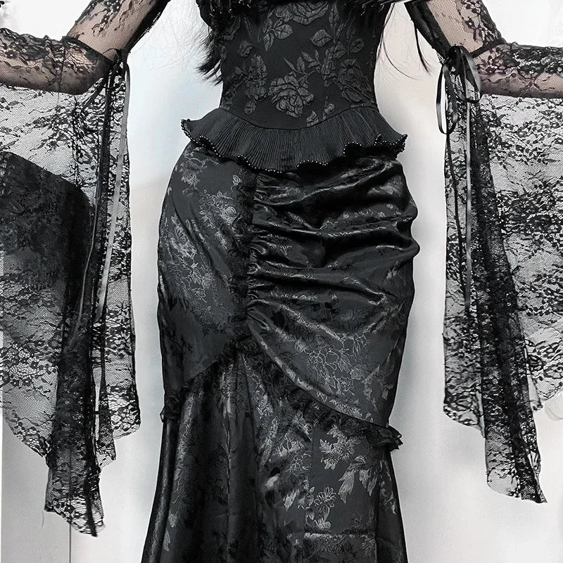 Gothic Elegance: High-Waisted Lace Stitch Mermaid Skirt for Stunning Party Looks