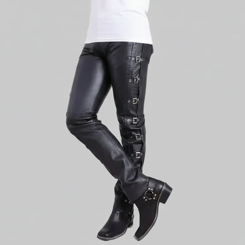 Faux Leather Slim-fit Steampunk Pants – Vintage Style with a Modern Twist