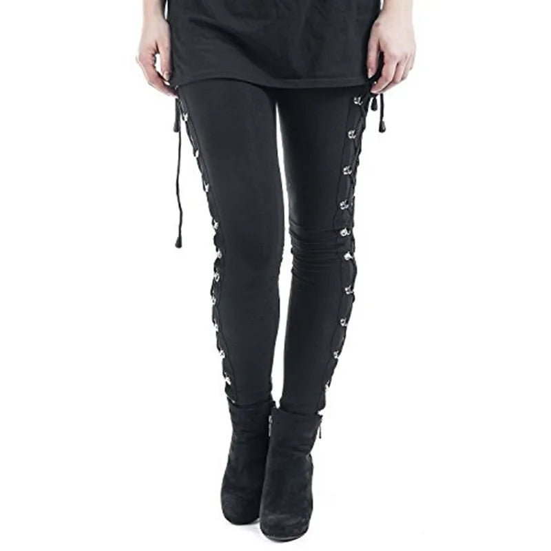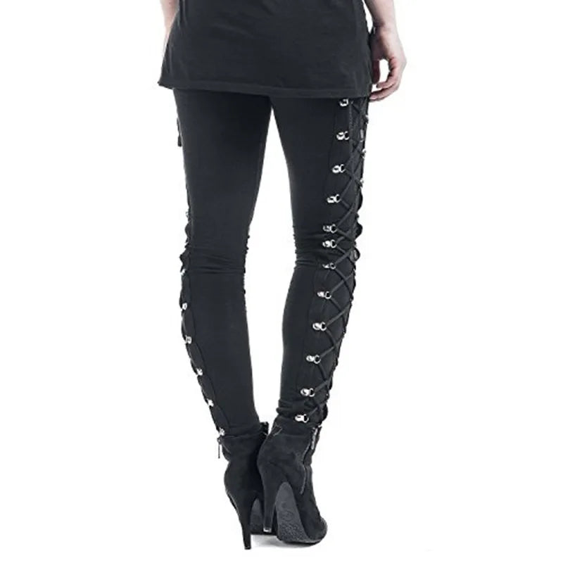 Gothic Steampunk Slim-Fit Lace-Up Pants