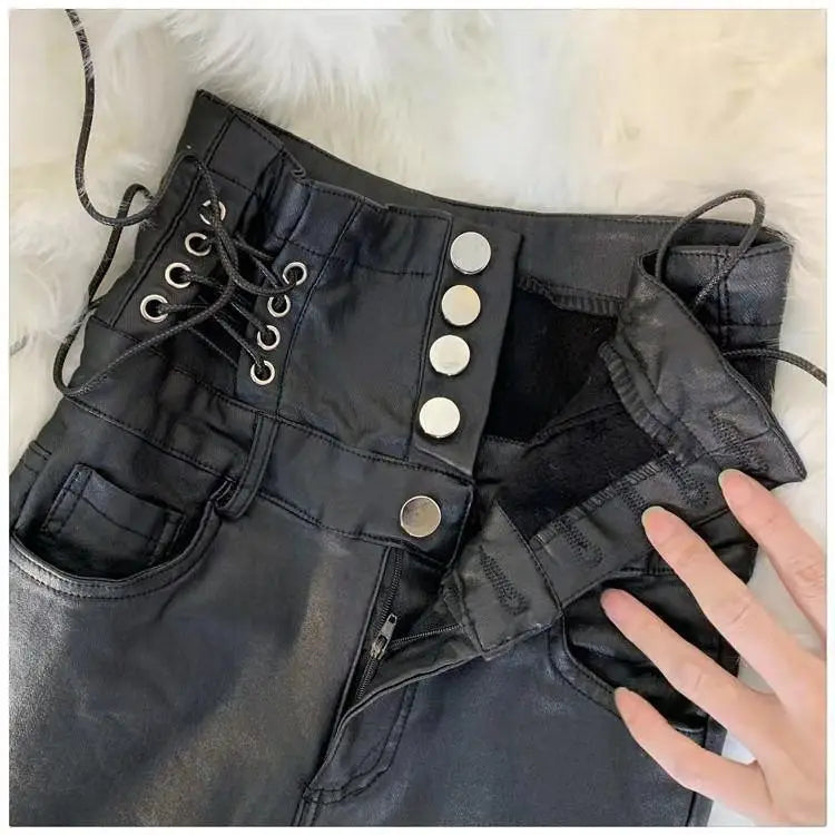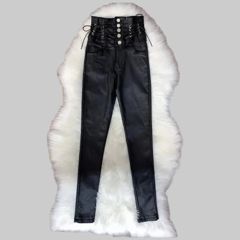 High-Waisted Faux Leather Steampunk Pants With Lacing