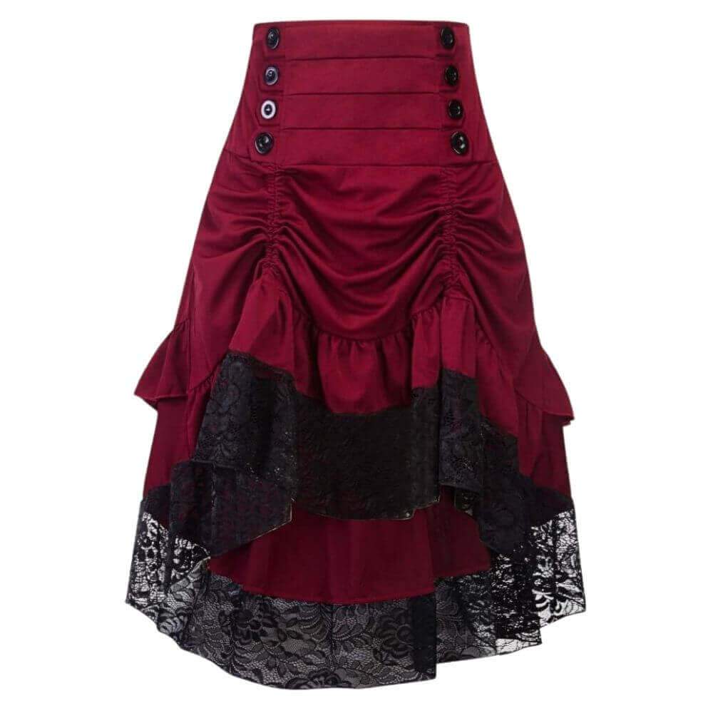 Beautiful and well-designed, the Steampunk High-Waisted Skirt is available in 3 different colors: red, purple and black. You can wear it for a special Steampunk or Victorian event or in your daily life, both are possible.