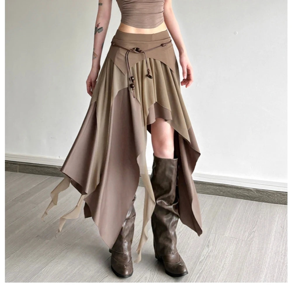 Irregular Khaki Steampunk Skirt