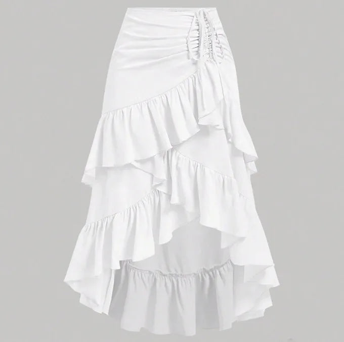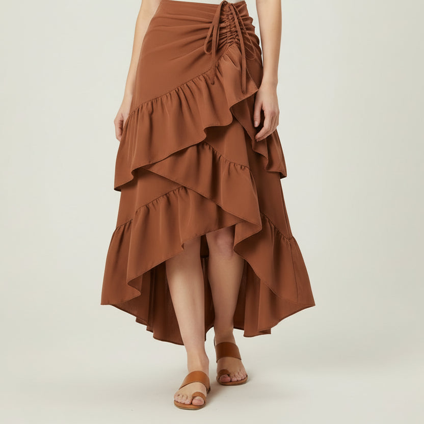 This tiered ruffled skirt is a chic addition to your wardrobe, combining comfort and style in one. The high-waisted design and natural waistline flatter your figure, while the tiered ruffle hem and lace decoration add a feminine, playful touch. Perfect for beach days, casual outings, or a holiday celebration, this skirt transitions seamlessly from day to night.