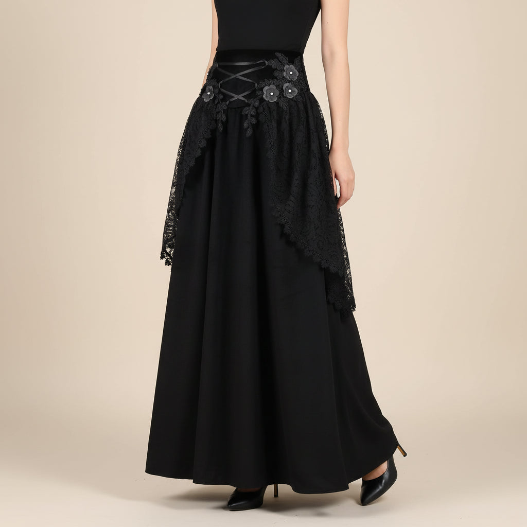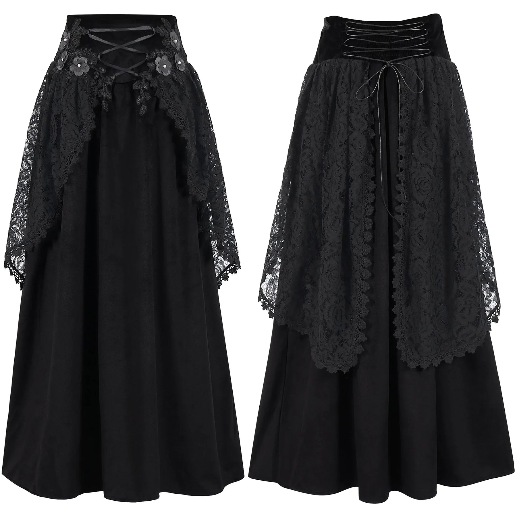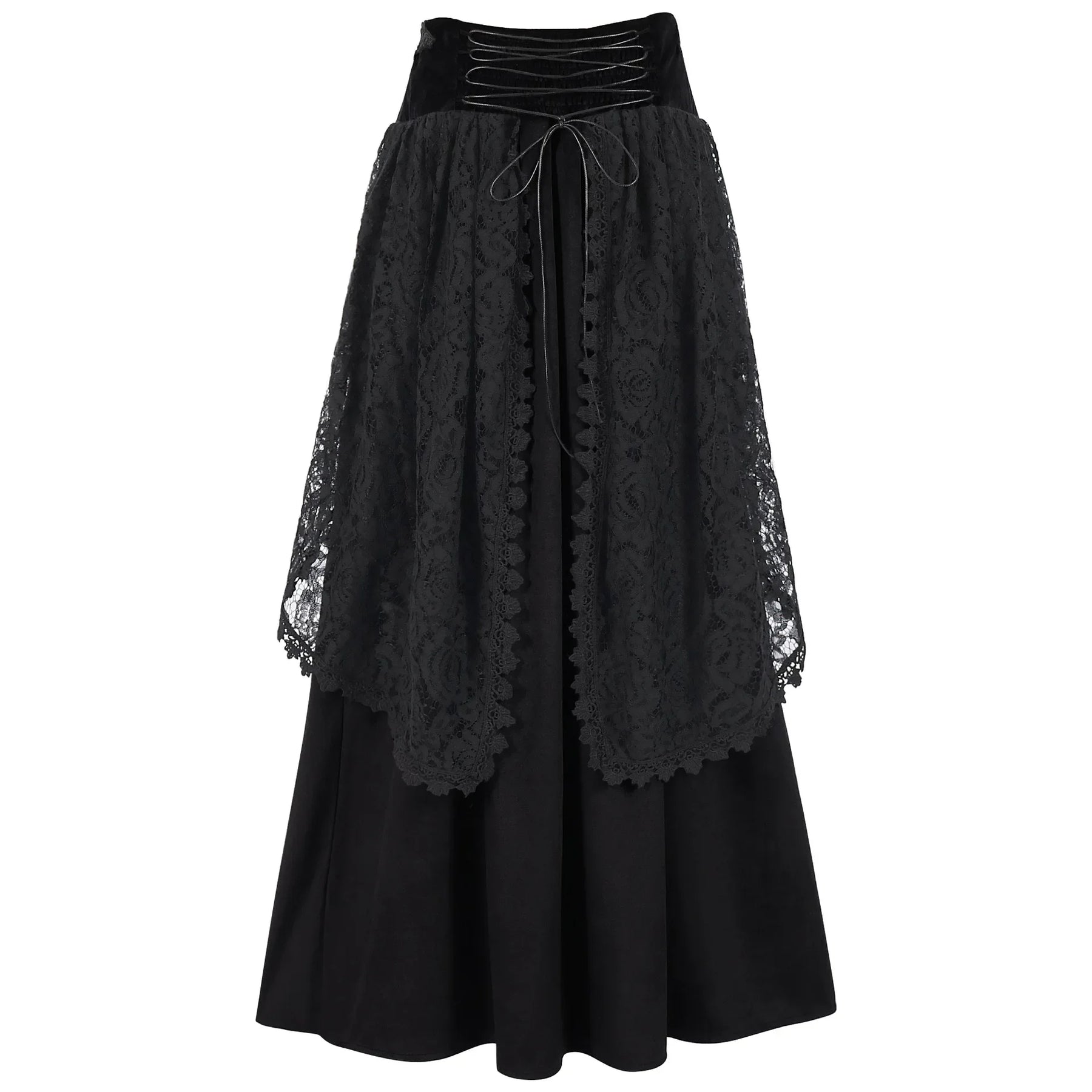 - Step back in time with this elegant Victorian-inspired Steampunk skirt, featuring a high waist and lace overlay for a dramatic, historical look.