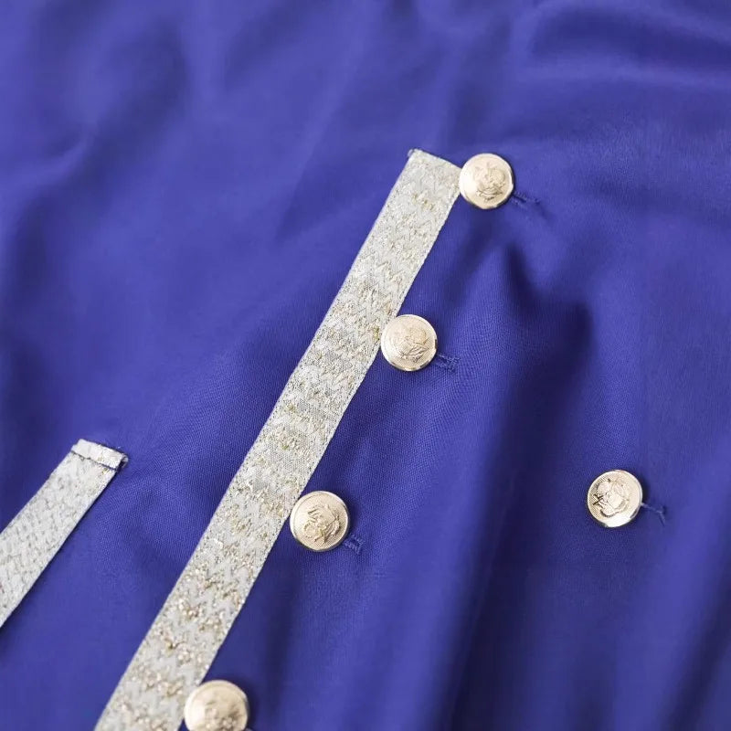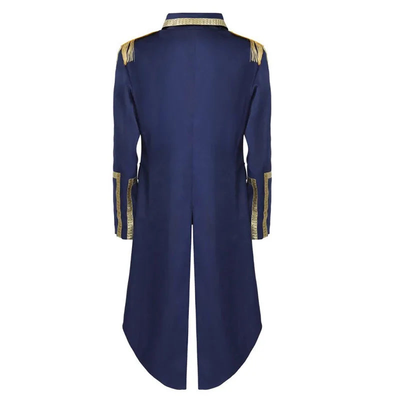 This medieval steampunk military cosplay coat captures the refined authority of 18th-century officers. Its structured cut and long tail design enhance posture while delivering a regal appearance. Crafted from uniform cloth, it offers both comfort and durability for extended wear. The gold accents and double-breasted style elevate its historical charm, making it a striking choice for men seeking an authentic and elegant costume.