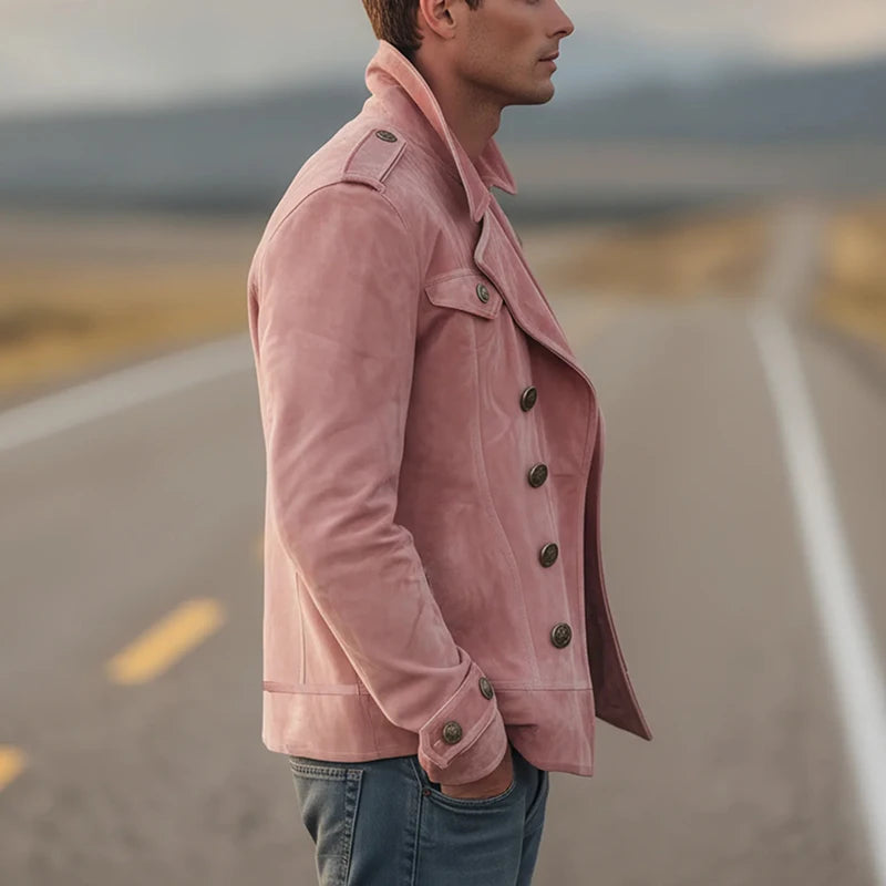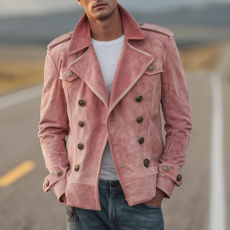 - Assert your style with this pink double-breasted steampunk jacket for men, a bold piece that blends retro elegance, originality, and confident character.