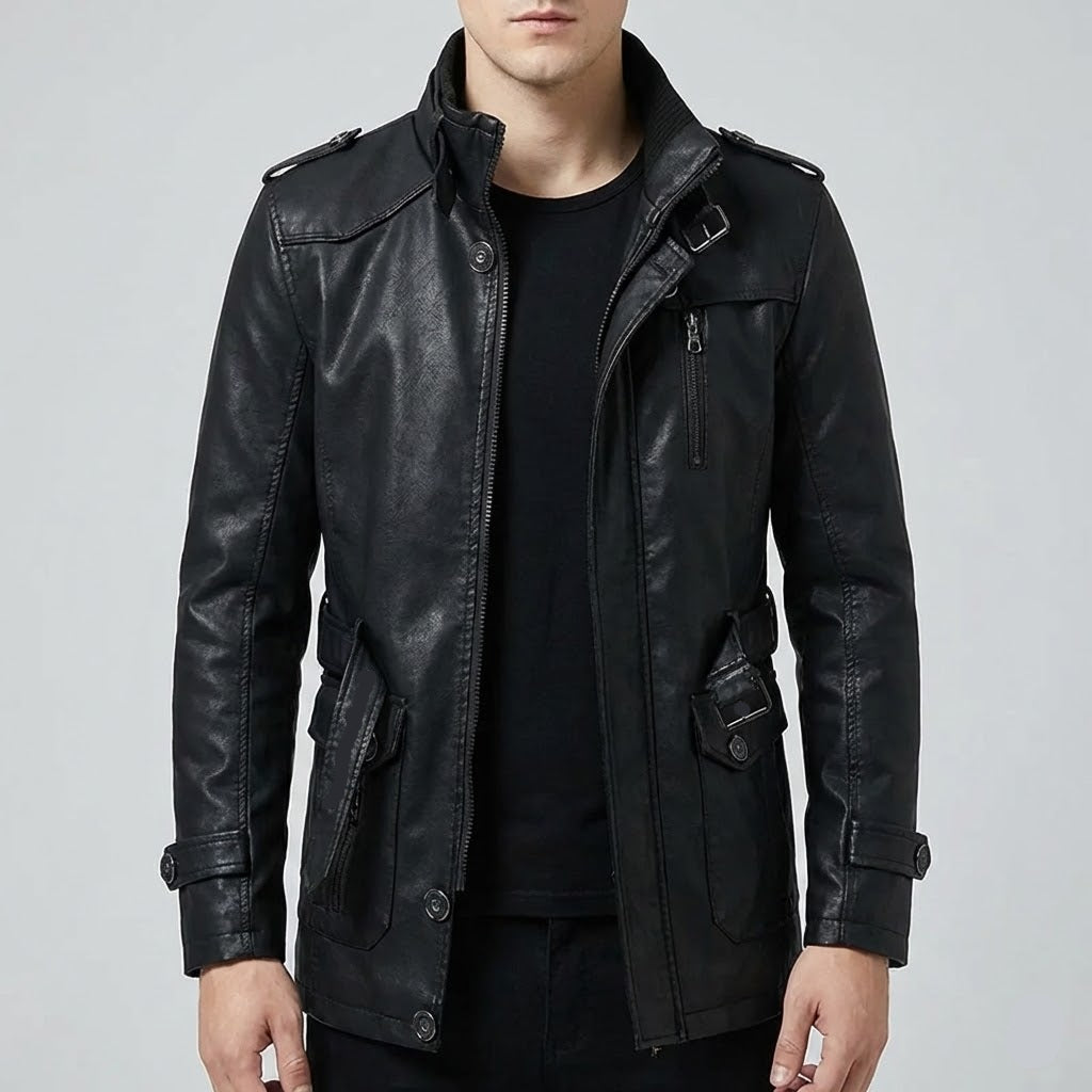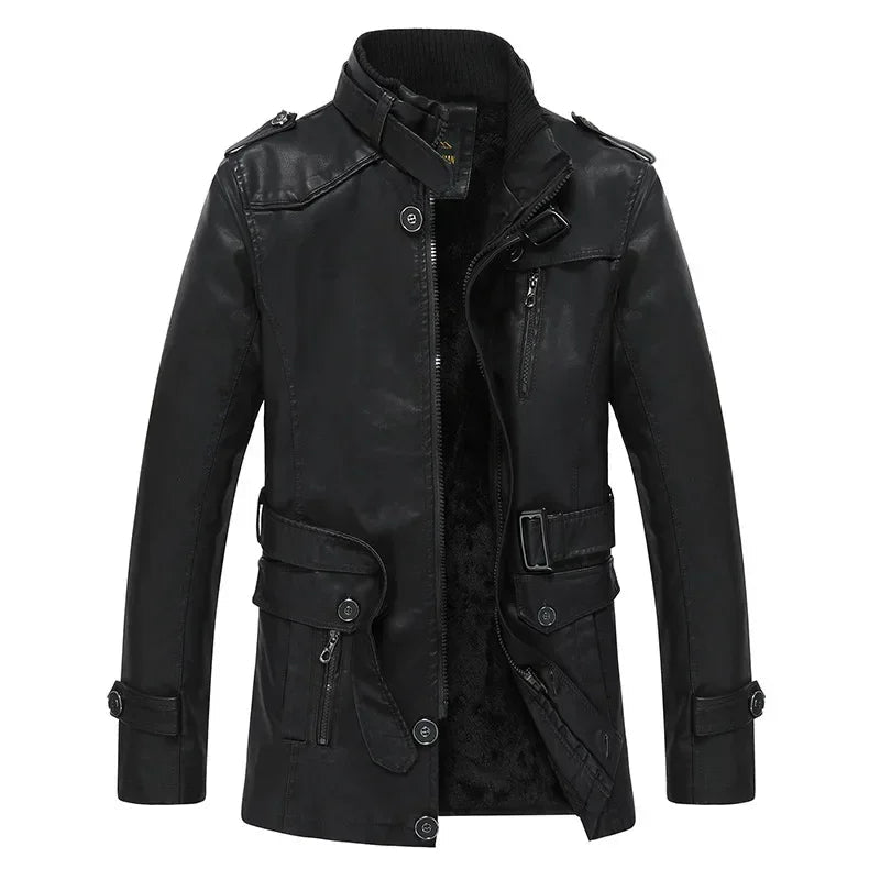 This Men's Warm Steampunk Jacket combines premium PU leather with a soft polyester fleece lining to keep you comfortable during the colder months. The sleek design features a classic turn-down collar and full-length sleeves, offering both style and warmth. Whether you're riding your motorcycle or simply navigating the urban streets, this versatile jacket is a must-have. Available in khaki, brown, and black, it provides options for every taste and wardrobe.