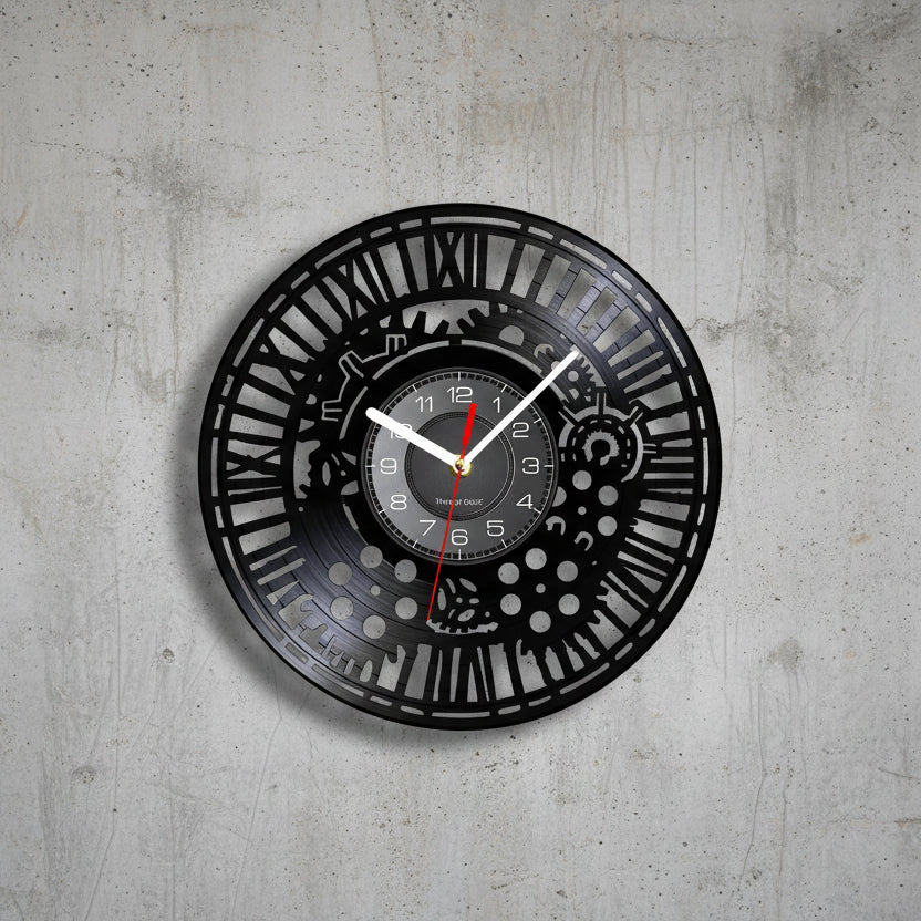 Modern Vinyl Record Steampunk Clock for Unique Home Décor