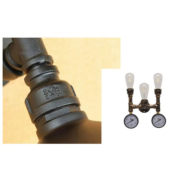 - Add industrial charm with this steampunk wall lamp featuring three bulbs and pressure gauges.