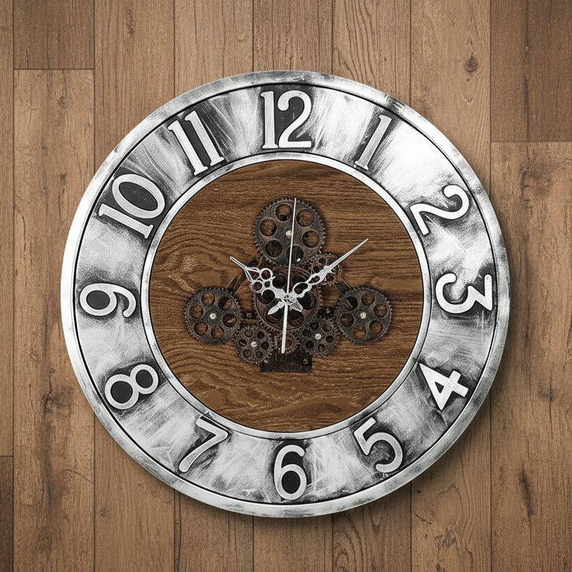This stunning clock combines rustic wood and polished metal, offering an industrial vibe that fits seamlessly in any modern home. The high-quality craftsmanship ensures durability while the large 60CM size makes it a standout feature on your wall. Whether for your living room, office, or bedroom, this clock brings both style and functionality.