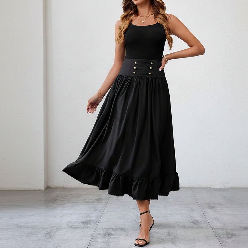 • Hemline: Ruffled hem that adds vintage charm and movement to the skirt.