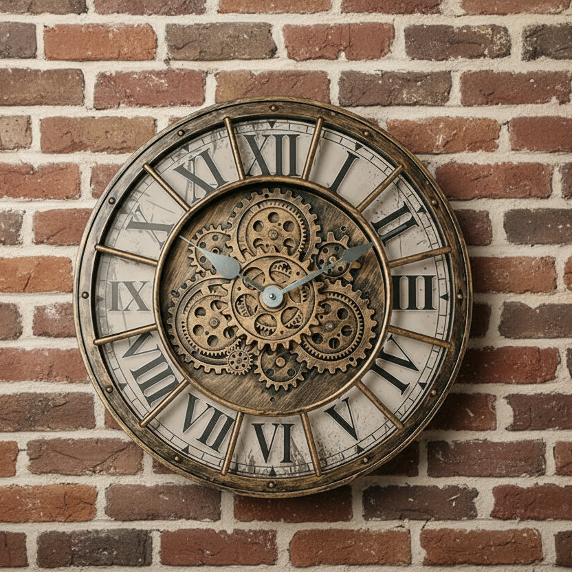 - Add a touch of industrial charm to your space with this retro steampunk gear clock — a stunning piece that brings both style and function to any room.
