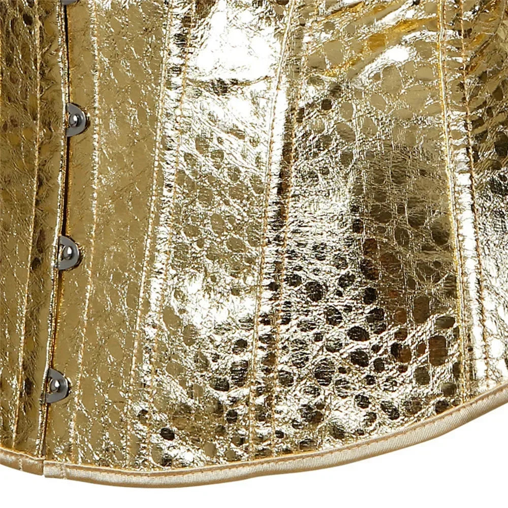 This sexy steampunk bustier corset is designed to highlight curves while delivering a powerful visual impact. The metallic gold and silver finishes create a luxurious shine that instantly elevates any outfit. Its overbust cut offers confident coverage and shaping, making it ideal for nightlife, performances, or themed events. With a front zip closure and structured panels, this corset blends modern edge with vintage inspiration for a standout look.