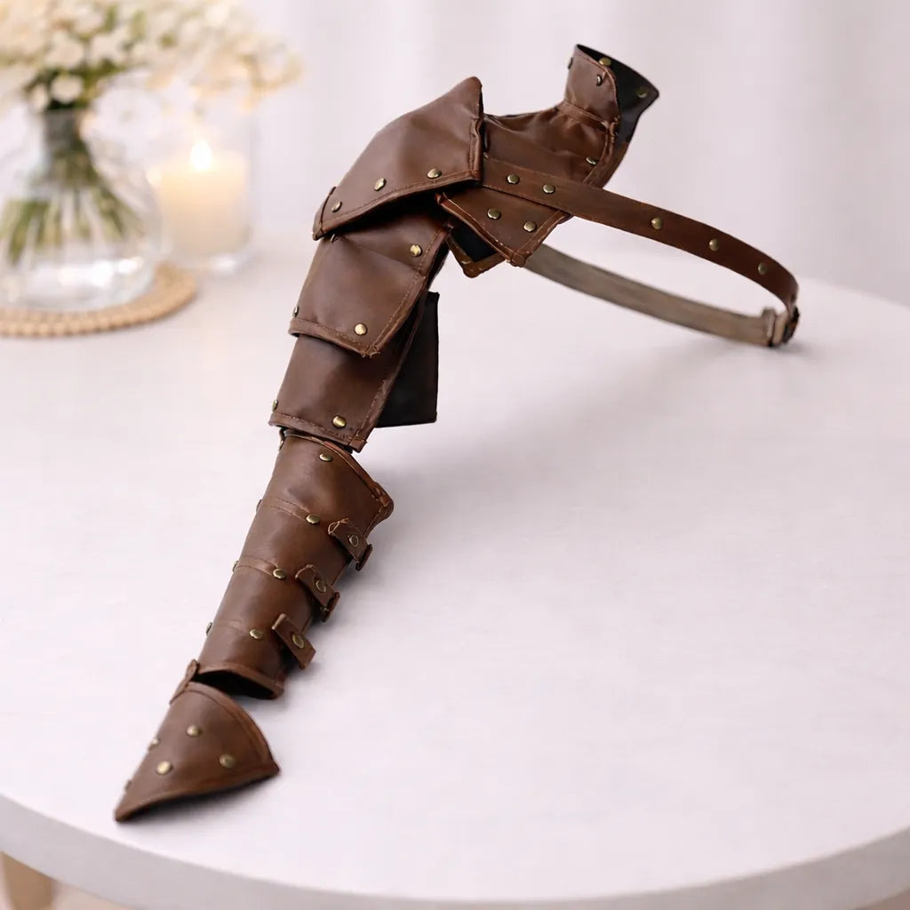Crafted from resistant materials and designed for ergonomic wear, this arm armor ensures comfort, stability, and durability. Its adjustable straps, detailed finishes, and flexible structure allow great freedom of movement while maintaining an imposing look. It retains its mechanical shine and strength over time. A perfect piece to combine functionality, resilience, and ingenious aesthetics in all your performances.