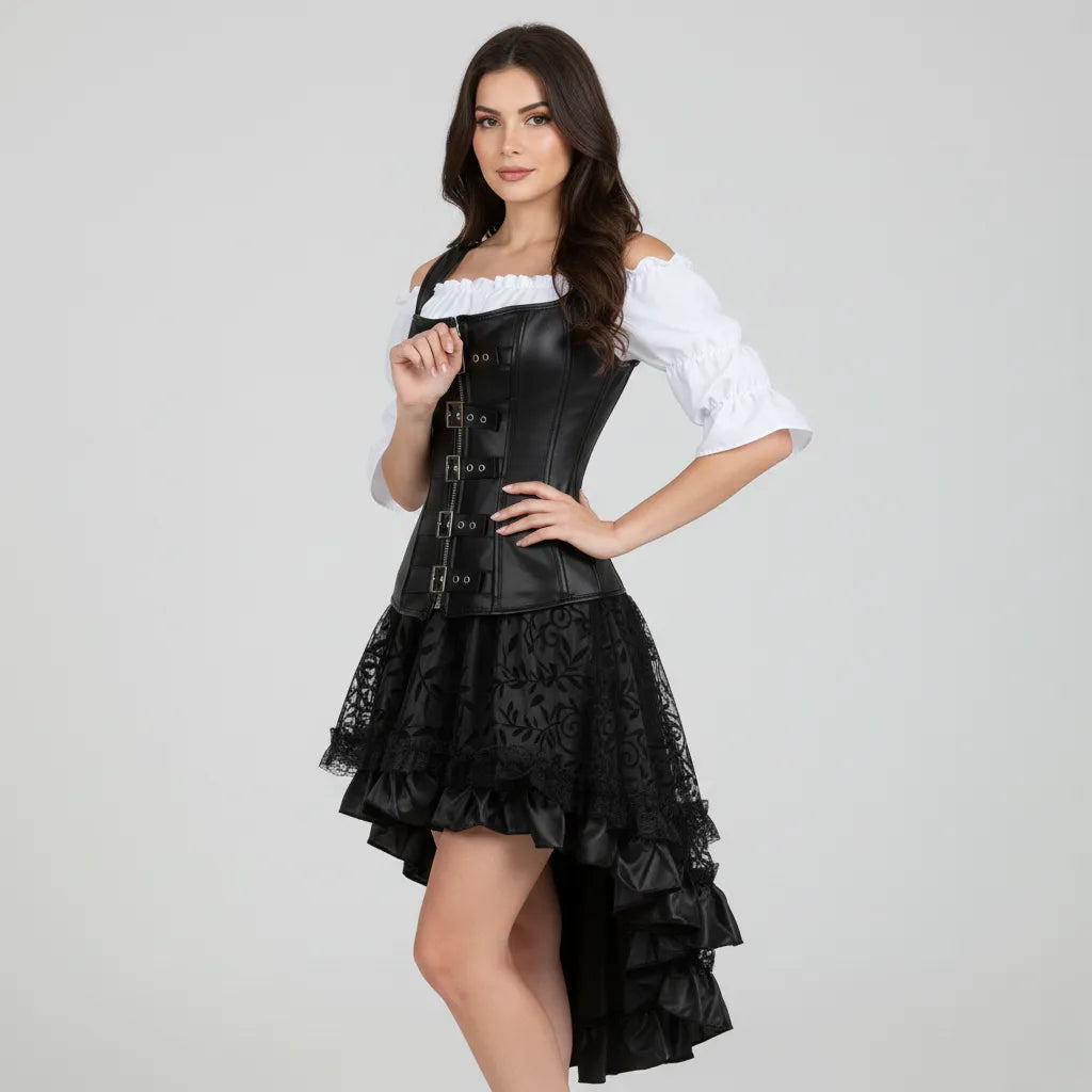 Made with resistant materials and impeccable finishes, this black gothic Steampunk corset dress guarantees remarkable durability. Its structured support, reinforced seams, and sturdy fabrics ensure a stable fit throughout the day or evening. Designed to combine dark aesthetics with practical comfort, it perfectly accompanies every movement. An ideal dress for intensely expressing your style while enjoying lasting comfort.