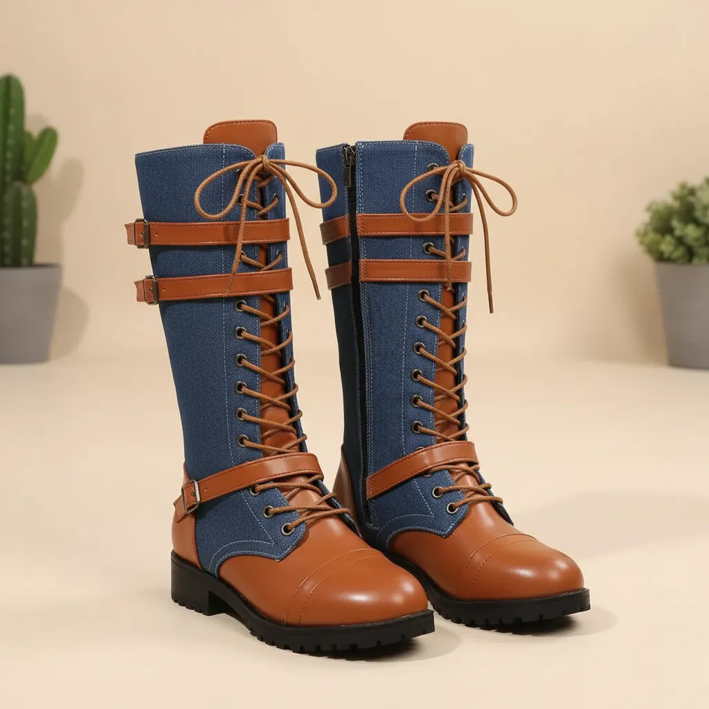 - Adopt a casual steampunk look with these denim boots, combining unique style, comfort, and character for an original and bold look.