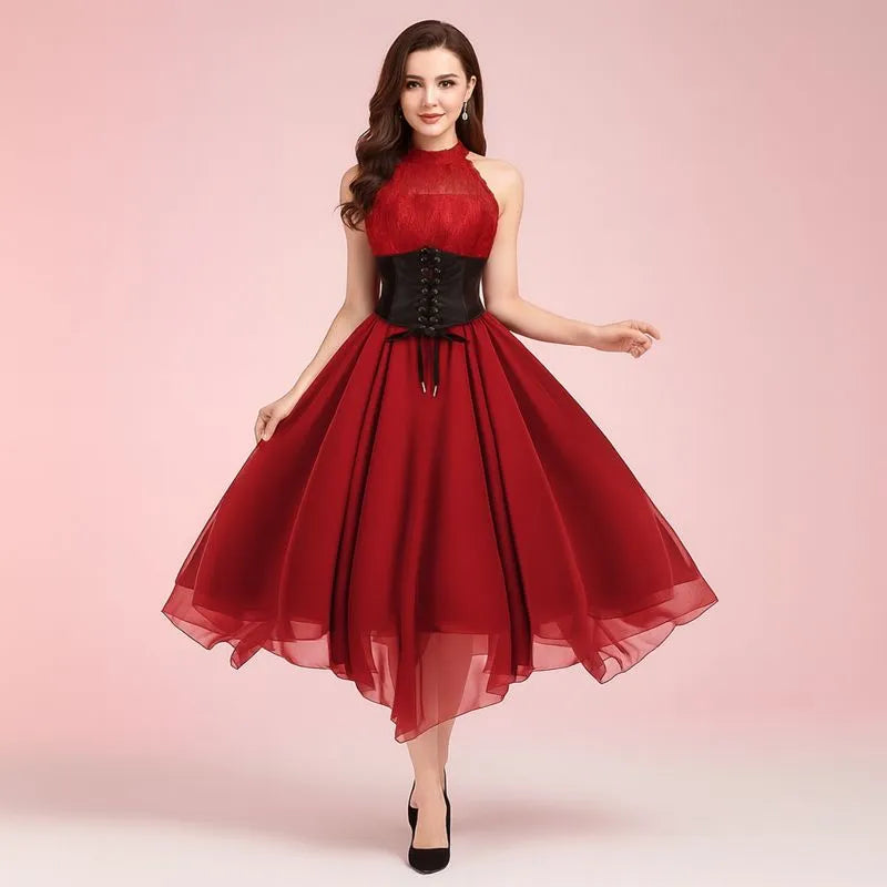 This dress is composed of several elements, first it has a beautiful corset of black color, which will highlight your forms and your silhouette, it also has a beautiful ribbon at the neck, which reminds us of the style a little more vintage.