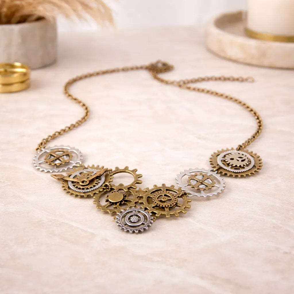 Wear this beautiful Steampunk Necklace to adopt the most beautiful steampunk style with its gears