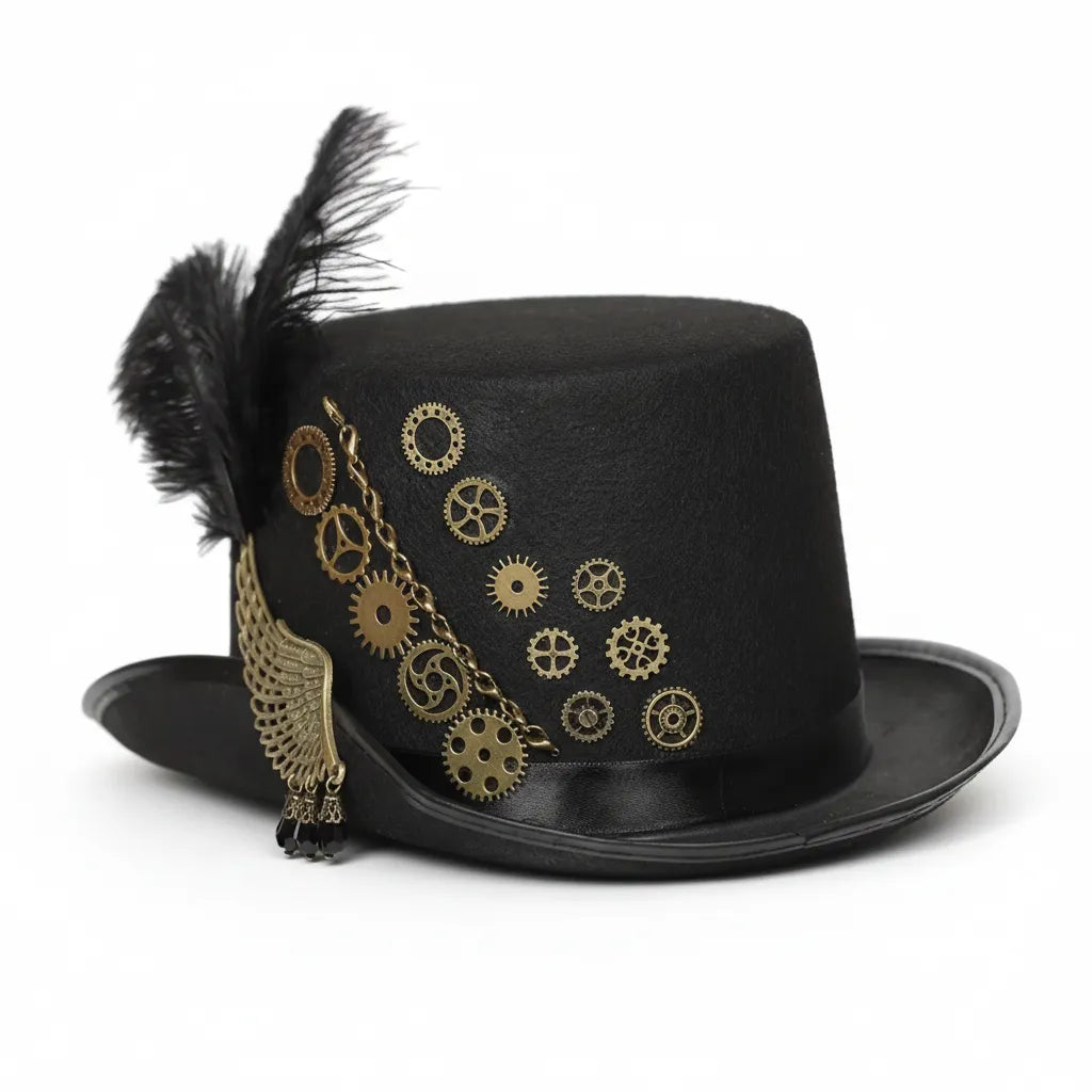 Reveal your sense of style with the Steampunk Hat Feathers, a refined accessory that instantly adds character to your outfit. Its steampunk-inspired design combines vintage charm with visual boldness. The delicately integrated feathers add a touch of elegance and mystery. Ideal for cosplay, a themed event, or an original outfit, this hat allows you to stand out with confidence and sophistication.