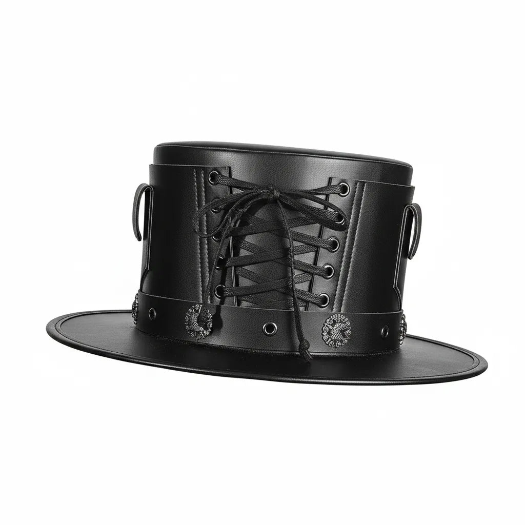 Embrace the unique style of Steampunk with this lace-up leather hat